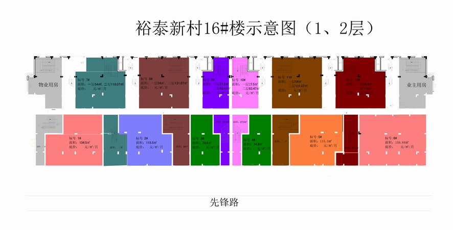 出租裕泰新村16#樓1、2層房屋,建筑面積約為1762.78平方米。其中1層建筑面積為995.66平方米,設(shè)有6個標(biāo)段(標(biāo)號1#-6#);1-2層建筑面積767.12平方米,設(shè)有6個標(biāo)段(標(biāo)號7#-12#),共計12個標(biāo)段(見附件4)。意向報名人可在招租公告發(fā)布5日內(nèi)前往進行實地考察。