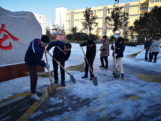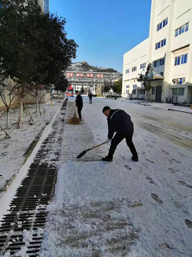 12月29日,港城迎來(lái)了2020年的第一場(chǎng)雪。白雪皚皚,北風(fēng)呼嘯,廠(chǎng)區(qū)各個(gè)生產(chǎn)設(shè)施道路上都覆蓋上了厚厚的積雪。雖是一片銀裝素裹的美景,卻給廠(chǎng)內(nèi)廣大職工的出行工作造成極大不便。為了保障公司安全穩(wěn)定生產(chǎn)和員工出行道路安全,杜鐘氨綸公司黨委迅速組織開(kāi)展了清除積雪大掃除活動(dòng)。