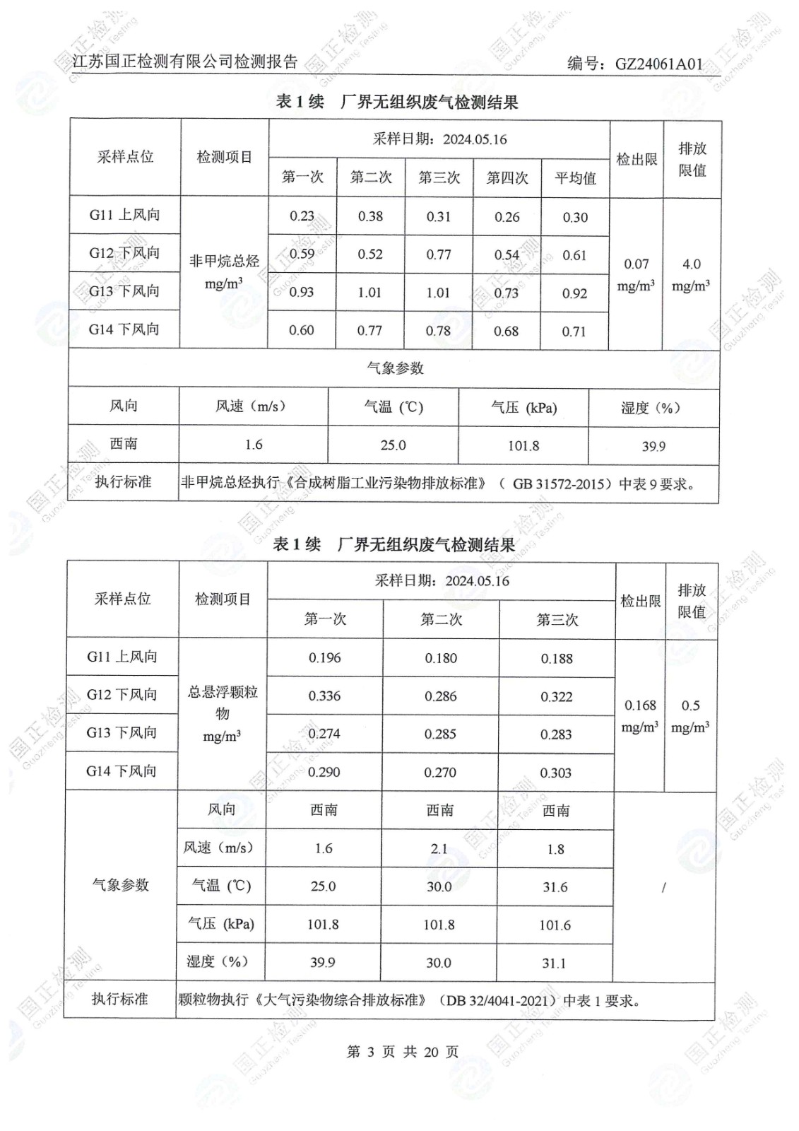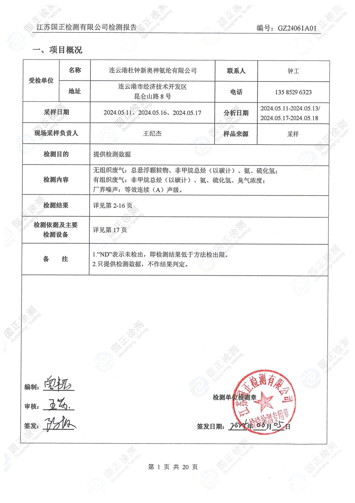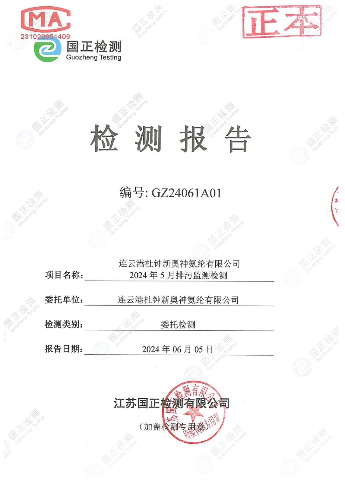 杜鐘氨綸2024年5月排污檢測報告