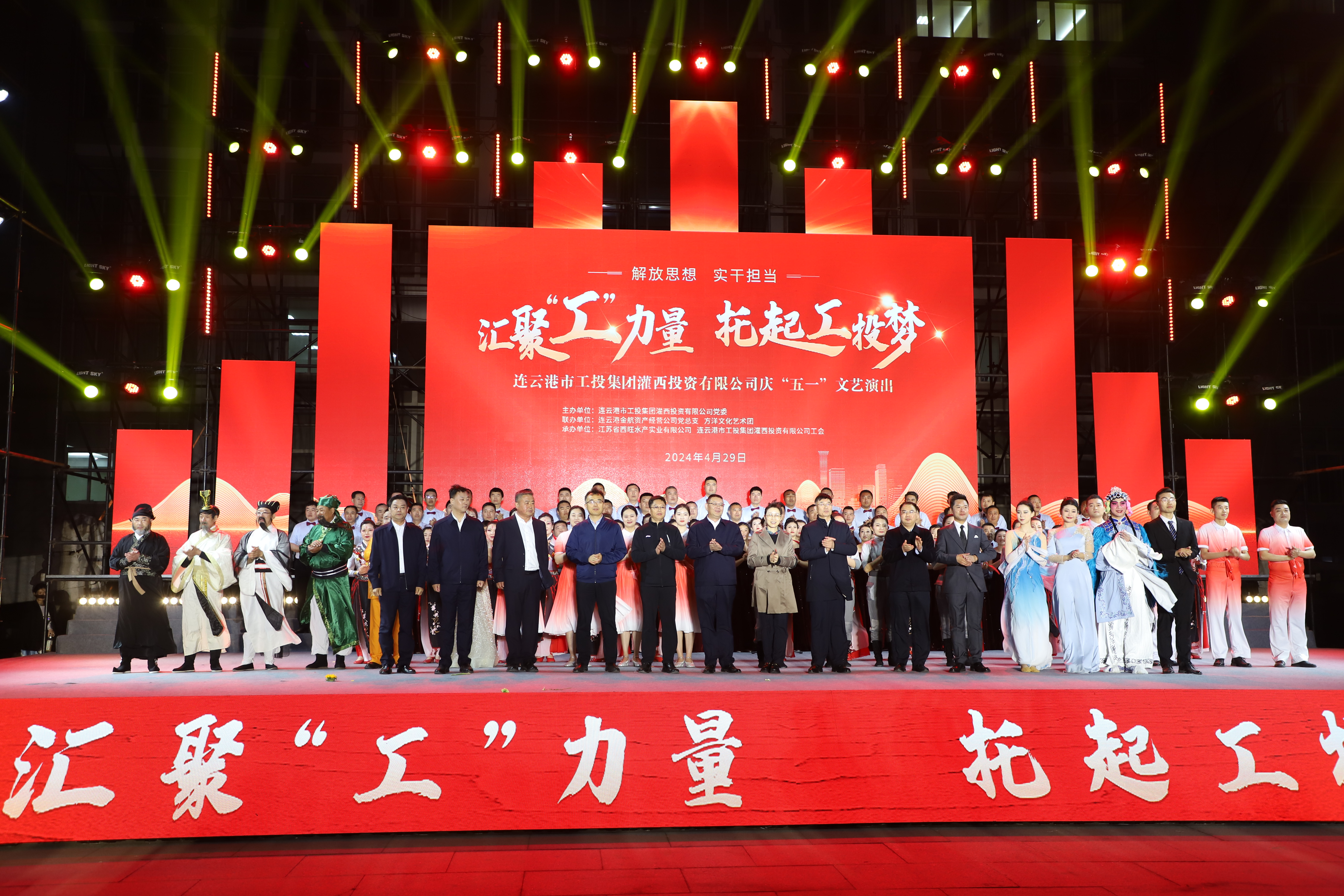 429日晚,灌西投資公司《匯聚“工”力量,托起工投夢》慶“五一”文藝演出在機關(guān)大樓前廣場舉行。本次活動由灌西投資公司黨委主辦,連云港金航資產(chǎn)經(jīng)營公司黨總支、方洋文化藝術(shù)團聯(lián)辦,旨在通過藝術(shù)的形式,營造崇尚勞模、學(xué)習(xí)先進、尊重勞動的良好氛圍,豐富公司員工的文化生活,激發(fā)干事創(chuàng)業(yè)熱情。集團公司領(lǐng)導(dǎo)張六林、戴鴻鳴、汪群及部分部門負責(zé)人,灌西、金航資產(chǎn)經(jīng)營公司領(lǐng)導(dǎo)班子成員出席演出活動,縣臨港產(chǎn)業(yè)區(qū)管委會、華能灌云清潔能源發(fā)電責(zé)任有限公司、徐圩新區(qū)方洋集團等有關(guān)領(lǐng)導(dǎo)受邀觀看演出。