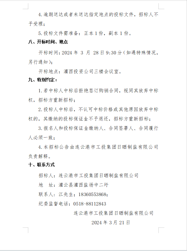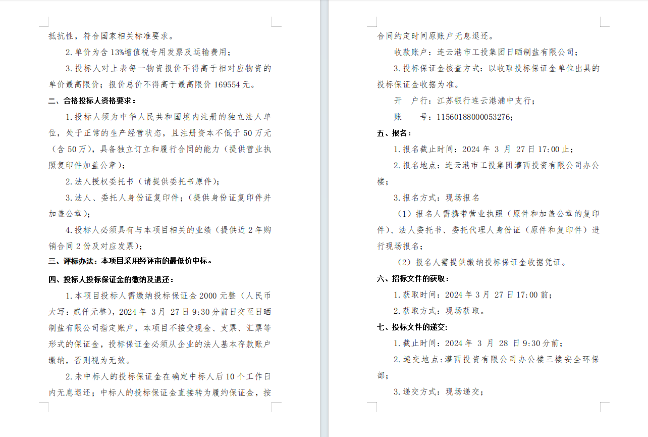 連云港市工投集團(tuán)日曬制鹽有限公司2024年度勞保用品采購項(xiàng)目公開招標(biāo)公告