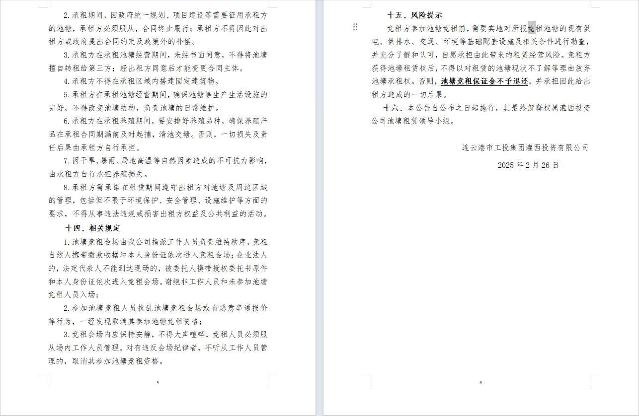 連云港市工投集團(tuán)灌西投資公司2025年度淡水養(yǎng)殖池塘公開(kāi)競(jìng)租公告