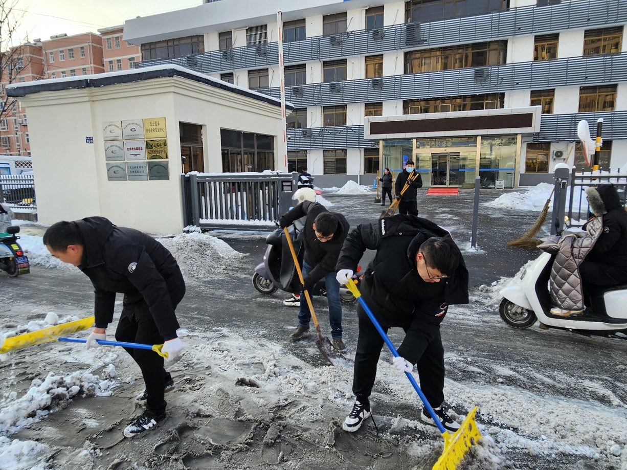 搶干會(huì)干巧勁足。這塊用雪鏟推就行”“那邊不需要掃,直接撒融雪劑”“換這個(gè),更省力”,掃雪現(xiàn)場(chǎng),大家齊心協(xié)力,組織有序,紛紛施展出自己的“巧勁”。有的員工用鐵鍬鏟雪,有的用掃帚清掃,還有的負(fù)責(zé)運(yùn)輸積雪。一時(shí)間,院內(nèi)響起“叮叮當(dāng)當(dāng)”了鏟雪聲、掃雪聲匯成了一首團(tuán)結(jié)協(xié)作、搶干會(huì)干的的贊歌。