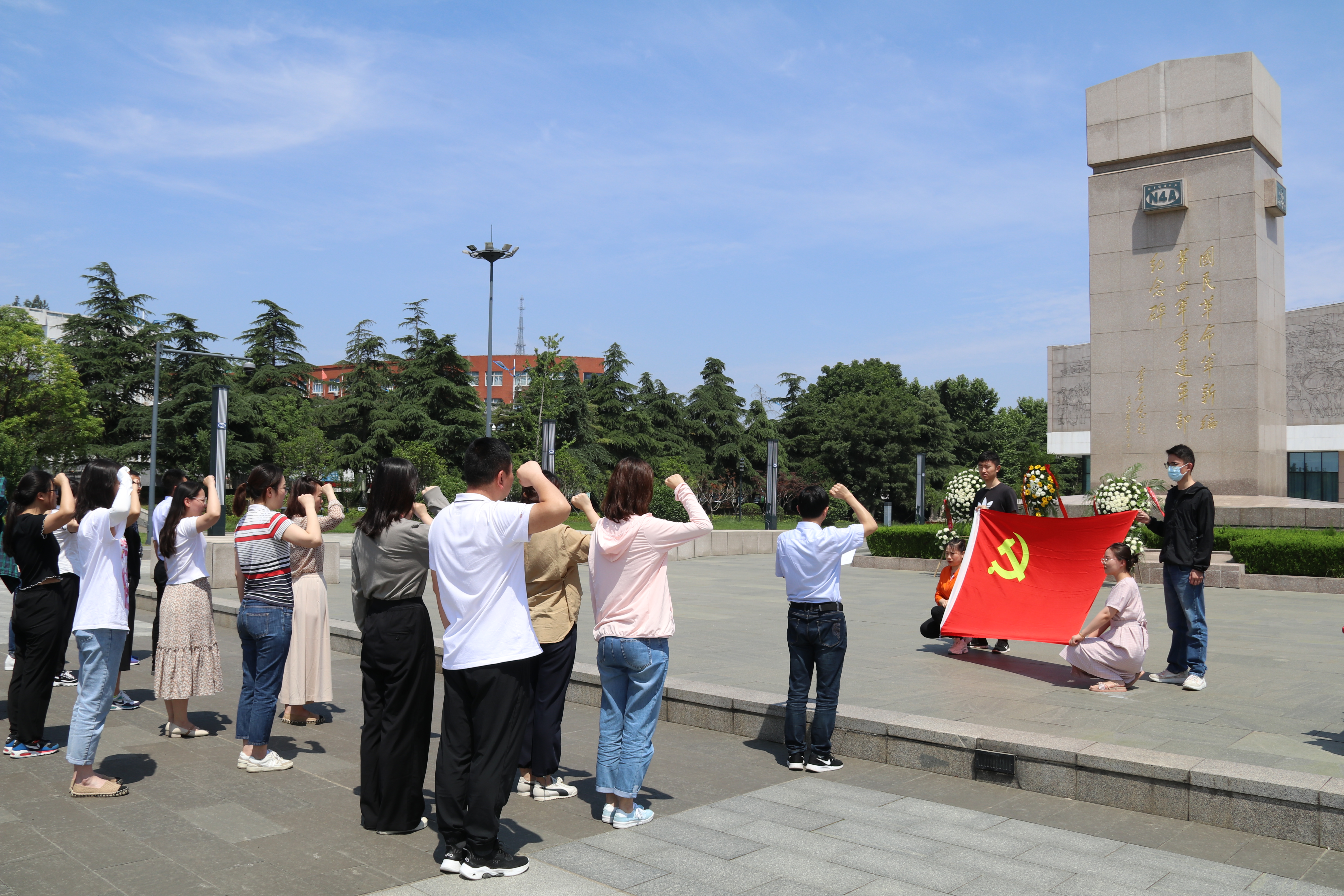 在紀(jì)念館廣場(chǎng)紀(jì)念碑前,該支部舉行向革命烈士敬獻(xiàn)花籃活動(dòng),緬懷英烈的不朽功績(jī)。全體在場(chǎng)人員面向紀(jì)念碑,向革命烈士行三鞠躬禮。隨后,全體黨員在該支部副書記帶領(lǐng)下,在黨旗前莊嚴(yán)宣誓,重溫入黨誓詞。儀式后,大家懷著無比敬畏的心情參觀紀(jì)念館展廳,通過實(shí)地語(yǔ)音講解,詳細(xì)了解了在民族存亡之際新四軍帶領(lǐng)人民群眾砥礪奮進(jìn)的抗戰(zhàn)史,切身地感受到革命先烈拋頭顱、灑熱血的英雄壯舉。