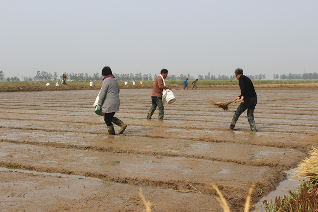 早在4月份,深入田間,就可見緊鑼密鼓的落谷育秧場景。明威公司4月15日完成秧田開溝、打埂、整平,17日開始浸種工作,并同步對秧田進(jìn)行上水洗鹽排堿及上水整平;4月22日正式實施秧田落谷工作,截止26日,全面完成自種2485畝秧田落谷工作。