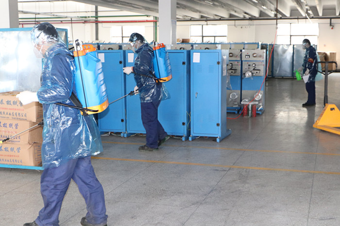 乙班班長封安帶領(lǐng)員工前往生產(chǎn)現(xiàn)場進(jìn)行消殺,對發(fā)熱員工可能出入和接觸的工作現(xiàn)場、操作臺、更衣室、原輔材料、工具等進(jìn)行徹底消毒。生產(chǎn)設(shè)備部王勇、王卉啟動調(diào)查程序,詢問其他員工,了解發(fā)熱員工行動軌跡和密切接觸情況。