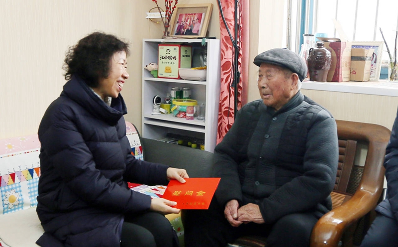 13日上午,省總工會(huì)黨組書記、副主席朱勁松在市人大副主任、市總工會(huì)主席王家全,市總工會(huì)黨組書記、副主席丁維杰陪同下,來(lái)我公司走訪慰問勞模王壽明同志,親手送上慰問金及慰問品,并為他帶來(lái)了新年的祝福。集團(tuán)公司董事長(zhǎng)楊龍、工會(huì)主席劉承志陪同走訪。