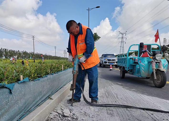 該分公司道路保潔緊扣徐圩城建與悅升公司考核細(xì)則,立足實(shí)際制定適合業(yè)務(wù)發(fā)展相關(guān)保潔制度與標(biāo)準(zhǔn),延續(xù)拓展繼徐新路,上海路,南京路、徐圩大道原優(yōu)質(zhì)道路之外的,石化園區(qū)樣板路延伸工程。近一個(gè)月以來(lái),園區(qū)兩個(gè)班組近35名保潔員工,齊心合力,步調(diào)一致,恪盡堅(jiān)守道路一線。黨員生產(chǎn)骨干陳小軍、薛明柱、朱海勇等同志示范引領(lǐng)有力得以彰顯,每天加班加點(diǎn),累了路邊草地上休息,盡管汗水濕透橙色衣衫,仍然忙碌于道路兩側(cè)。全體員工無(wú)懼熾熱陽(yáng)光照曬,清掃人行道上的泥土、樹(shù)葉,石子近5000多米長(zhǎng),打包裝運(yùn)路邊雜物達(dá)800多袋,清理雜草50多處。安全序時(shí)推進(jìn)路障大排查。面對(duì)路面上凝固的混凝土塊,大家舉起鐵錘不斷振動(dòng)敲打,150米長(zhǎng)的柏油路面恢復(fù)往日的干凈、整潔。在他們的共同努力下,園區(qū)的樣板路創(chuàng)建已形成規(guī)模。下一步,保潔分公司將定期將加大巡查與考核力度,發(fā)現(xiàn)問(wèn)題立即整改,為成功完成園區(qū)各類重大活動(dòng)保障工作打下堅(jiān)實(shí)品質(zhì)根基。(楊波)