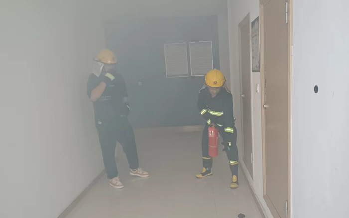 本次演練模擬公司辦公樓三樓電纜井因電路故障引發(fā)火情組織職工開展應(yīng)急疏散。 “起火啦!”15時(shí)許,辦公樓三樓一電纜井內(nèi)突然涌出滾滾濃煙。臨近人員發(fā)現(xiàn)著火后,第一時(shí)間使用滅火器進(jìn)行撲救。濃煙觸發(fā)自動(dòng)報(bào)警裝置,消防控制室值班人員接到警報(bào)后,立即通知志愿消防隊(duì)伍趕赴現(xiàn)場(chǎng)撲救,并撥打報(bào)警電話,向應(yīng)急指揮部報(bào)告。公司應(yīng)急指揮部立即啟動(dòng)應(yīng)急預(yù)案,滅火搶救組、安全救護(hù)組、緊急疏散組等應(yīng)急小組隨即到位,有條不紊開展滅火、疏散等工作。消防救援隊(duì)伍到達(dá)現(xiàn)場(chǎng)后,接過現(xiàn)場(chǎng)指揮權(quán),開展滅火救援。安全搶救組搜索受傷人員,并對(duì)受傷人員簡單急救后送往醫(yī)院進(jìn)行治療,緊急疏散組立即組織辦公大樓人員,用濕毛巾捂住口鼻從應(yīng)急通道撤離。10分鐘后,險(xiǎn)情排除,應(yīng)急救援結(jié)束。最后,組織部分人員開展滅火實(shí)操演練