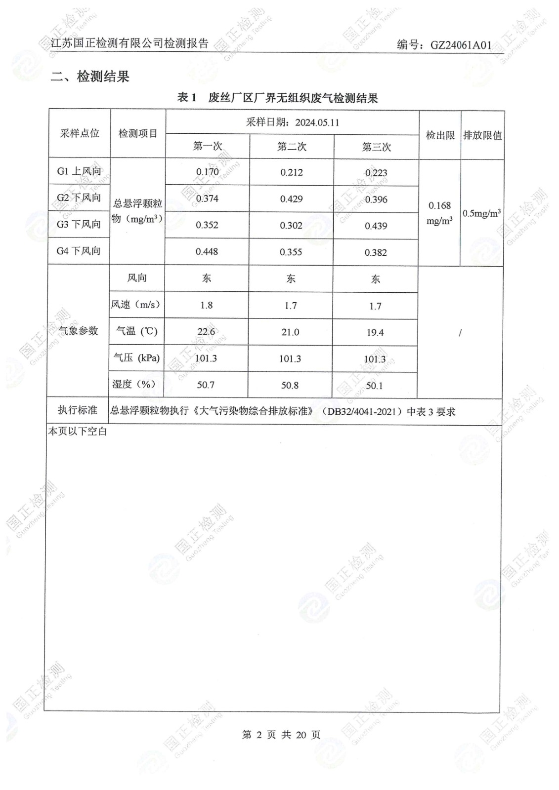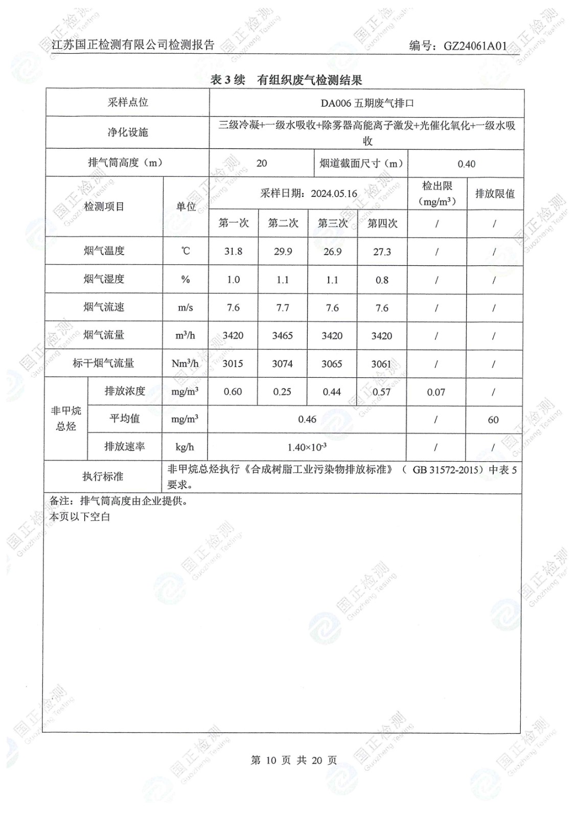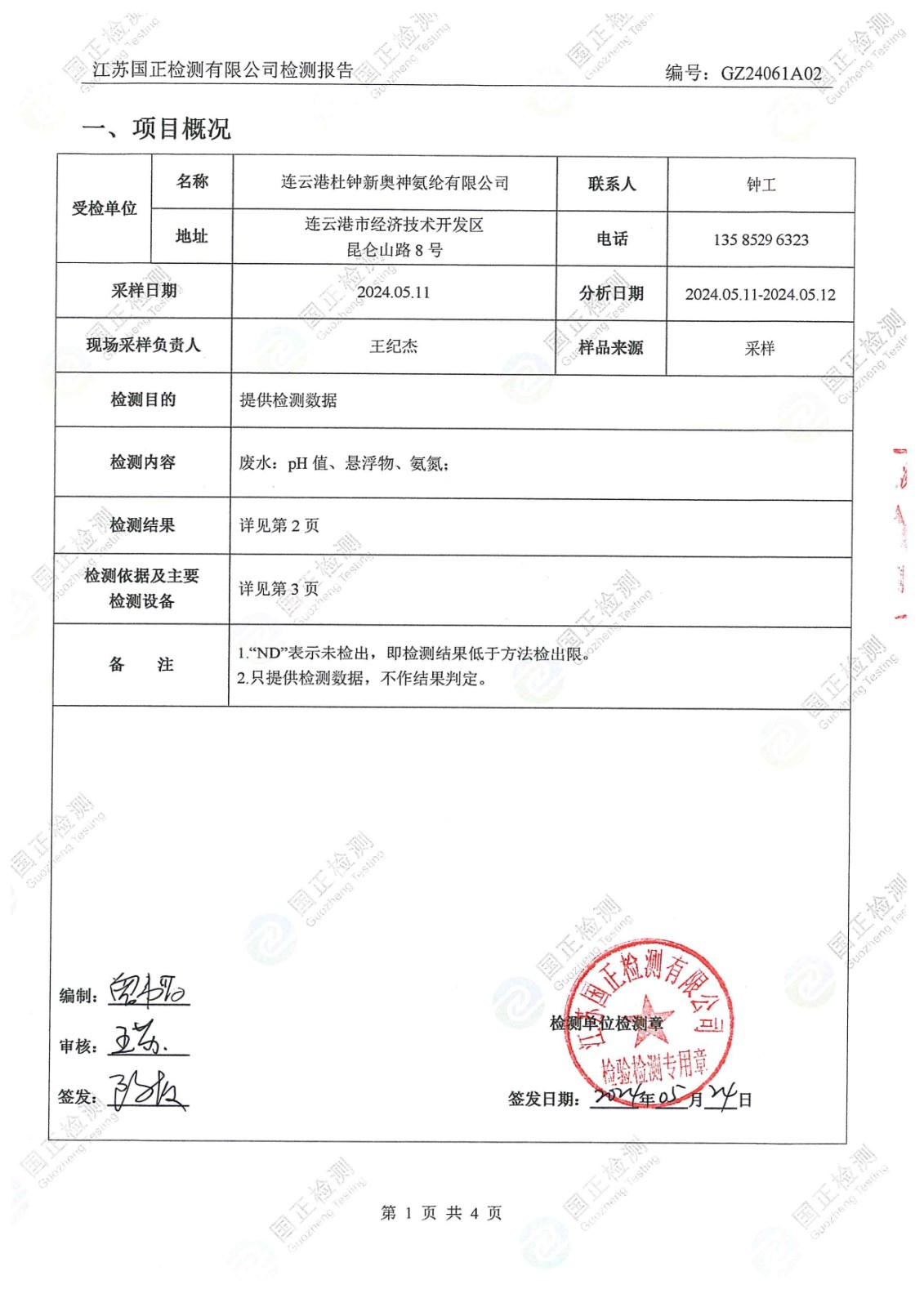 杜鐘氨綸2024年5月排污檢測報告