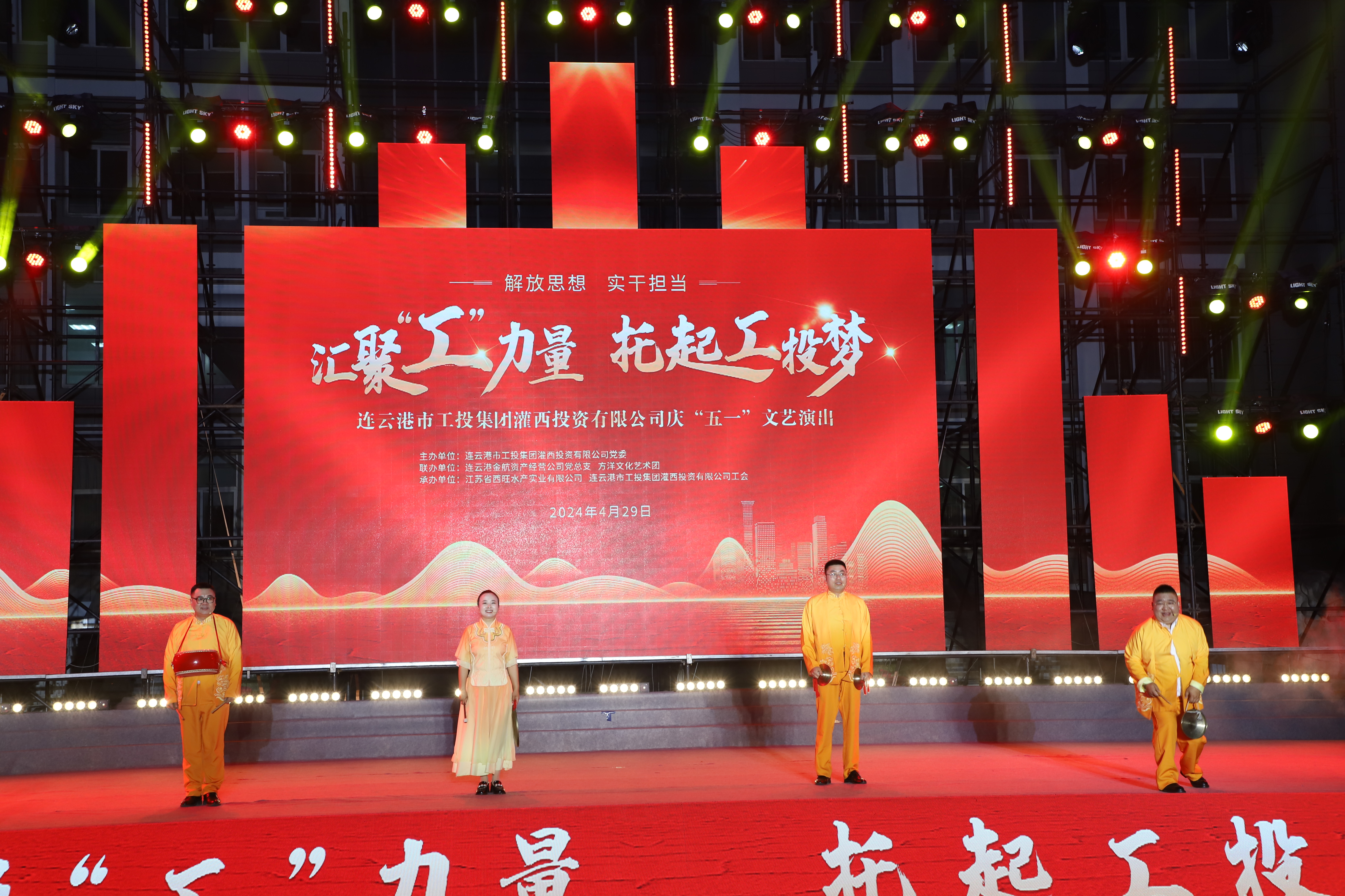 429日晚,灌西投資公司《匯聚“工”力量,托起工投夢》慶“五一”文藝演出在機關(guān)大樓前廣場舉行。本次活動由灌西投資公司黨委主辦,連云港金航資產(chǎn)經(jīng)營公司黨總支、方洋文化藝術(shù)團聯(lián)辦,旨在通過藝術(shù)的形式,營造崇尚勞模、學(xué)習(xí)先進、尊重勞動的良好氛圍,豐富公司員工的文化生活,激發(fā)干事創(chuàng)業(yè)熱情。集團公司領(lǐng)導(dǎo)張六林、戴鴻鳴、汪群及部分部門負責(zé)人,灌西、金航資產(chǎn)經(jīng)營公司領(lǐng)導(dǎo)班子成員出席演出活動,縣臨港產(chǎn)業(yè)區(qū)管委會、華能灌云清潔能源發(fā)電責(zé)任有限公司、徐圩新區(qū)方洋集團等有關(guān)領(lǐng)導(dǎo)受邀觀看演出。