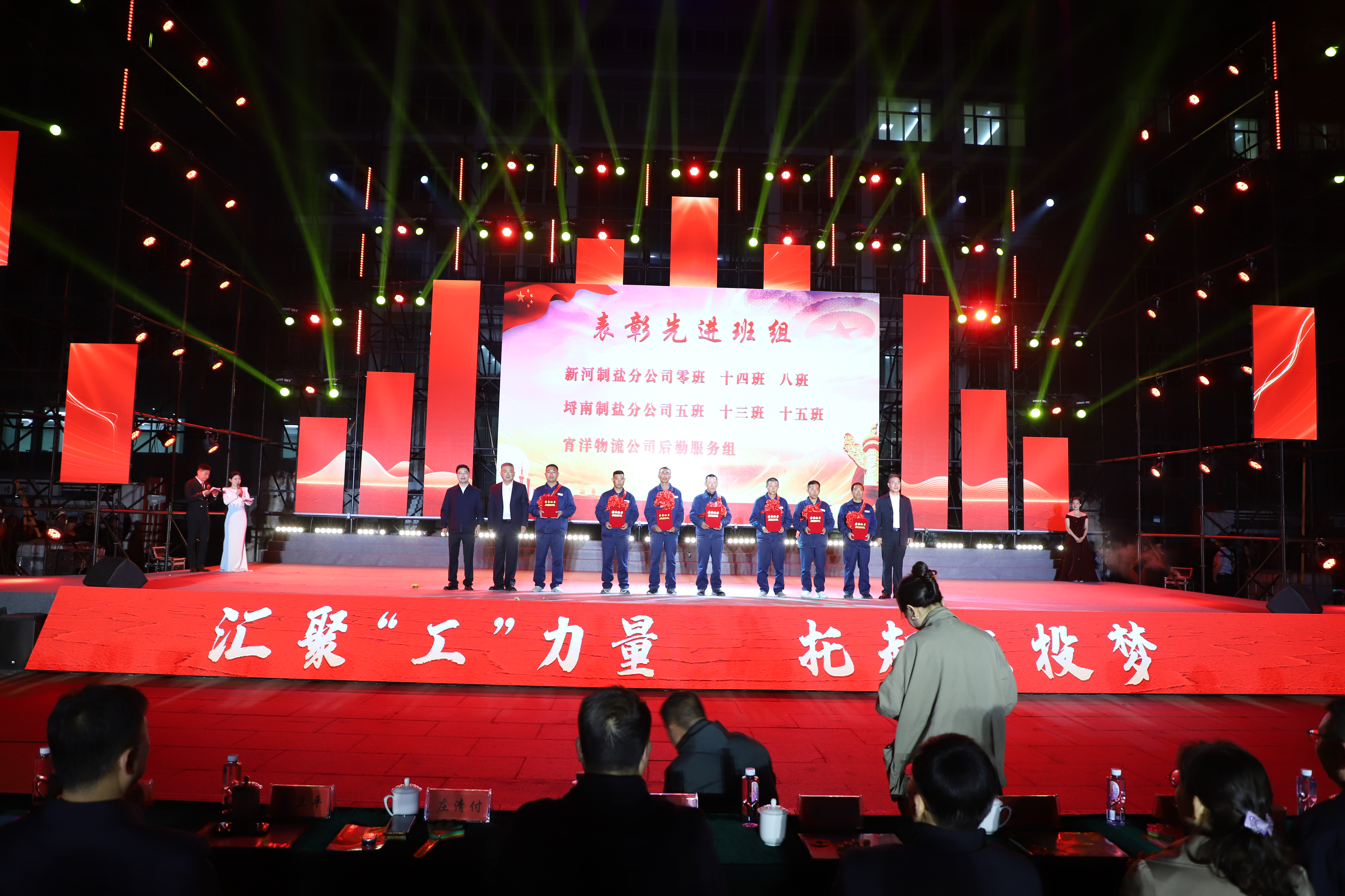 本次文藝匯演有歌舞、三句半、音樂快板、朗誦、相聲、歌曲串燒、歌曲獨唱、大合唱等豐富多彩的節(jié)目,其表演形式和精彩內(nèi)容引人入勝,火熱絢麗的舞臺、貼近職工生活的節(jié)目內(nèi)容、公司熱火朝天的奮斗場景,呈現(xiàn)了灌西人對企業(yè)的深沉情感和對工作生活的激情與熱愛。演出在開場群舞《盛世歡歌》拉開帷幕,整個演出分為“禮贊·勞動最光榮”“鑄魂·勞動最崇高”“閃耀·勞動最美麗”“輝煌·勞動最偉大”四個篇章,三句半《凝心聚力譜新篇》、舞蹈《沸騰的鹽灘》、音樂快板《后發(fā)先至看工投》等都是灌西職工自編自演的節(jié)目,充分展現(xiàn)了灌西員工朝氣蓬勃、奮發(fā)向上的精神面貌,以及對公司創(chuàng)新發(fā)展、職工幸福安康的美好祝愿。灌西公司黨委書記、董事長孫政權(quán)和金航公司黨總支書記、總經(jīng)理莊清付分別登臺獻藝,為大家表演了歌曲獨唱《我是一條小河》和配樂詩朗誦《我驕傲,我是中國人》,得到職工觀眾們熱烈的掌聲。小合唱《咱們工人有力量》、大合唱《新時代新家園》《沒有共產(chǎn)黨就沒有新中國》等節(jié)目把現(xiàn)場的氣氛推向了高潮,有力展現(xiàn)了全公司職工們激情澎湃、昂揚奮進的精神面貌。在文藝演出中間,還分別對公司各條戰(zhàn)線的勞模先進代表、先進單位、部門和班組進行了表彰。(西宣)