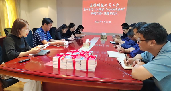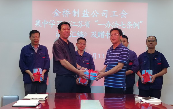 為落實(shí)市總及集團(tuán)工會相關(guān)要求, 9月13日,我公司工會舉辦集中學(xué)習(xí)《江蘇省“一辦法七條例”法規(guī)匯編》活動及贈書儀式。公司工會負(fù)責(zé)人,各分會、人資部門、安全部門負(fù)責(zé)人,部分職工代表參加。