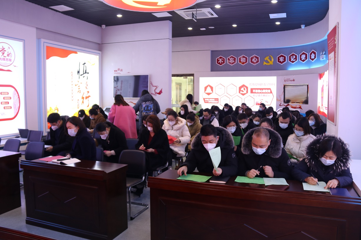 1月16日上午,金融板塊在五樓會議室召開2022年度民主測評會,支部書記、董事長徐兵主持會議。
