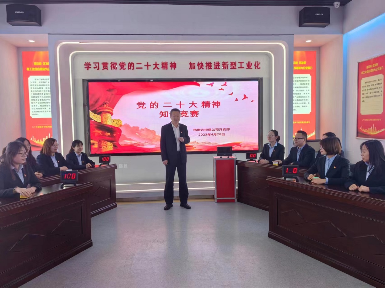 為深入學(xué)習(xí)貫徹黨的二十大精神,喜迎“五四”青年節(jié),在金融板塊上下營(yíng)造濃厚的學(xué)習(xí)氛圍,踐行集團(tuán)黨委“解放思想強(qiáng)引領(lǐng)、提質(zhì)增效創(chuàng)佳績(jī)”黨內(nèi)主題教育實(shí)踐活動(dòng)和支部“七個(gè)一”學(xué)習(xí)部署要求,4月30日,格斯達(dá)公司黨支部在公司五樓會(huì)議室舉辦“迎五四●踐行新思想、奮進(jìn)新征程”黨的二十大知識(shí)競(jìng)賽活動(dòng)。