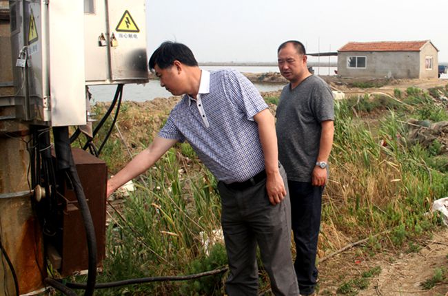 6月21日,公司董事長、黨委書記胡傳法到 所屬 聯(lián)系點三洋、黃沙分場的付河碼頭排淡河啟閉閘、十八圩池塘用變電箱等處集中突擊 檢 查安全和防汛。