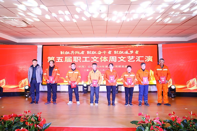 1227日下午,臺(tái)北(華茂)公司第五屆職工文體周閉幕式暨頒獎(jiǎng)文藝匯演活動(dòng)在環(huán)保裝備產(chǎn)業(yè)園圓滿落幕。公司領(lǐng)導(dǎo)、各單位黨政工負(fù)責(zé)人(項(xiàng)目部負(fù)責(zé)人)、各部門負(fù)責(zé)人、星級(jí)員工、受表彰人員、演職人員觀看演出,特邀請(qǐng)集團(tuán)紀(jì)委書記張興林,集團(tuán)黨建人資部部長(zhǎng)夏正斌、集團(tuán)紀(jì)檢組組長(zhǎng)王建松、集團(tuán)工會(huì)副主席陸向東、集團(tuán)紀(jì)委副書記喻敏等同志到場(chǎng)觀摩、指導(dǎo)。