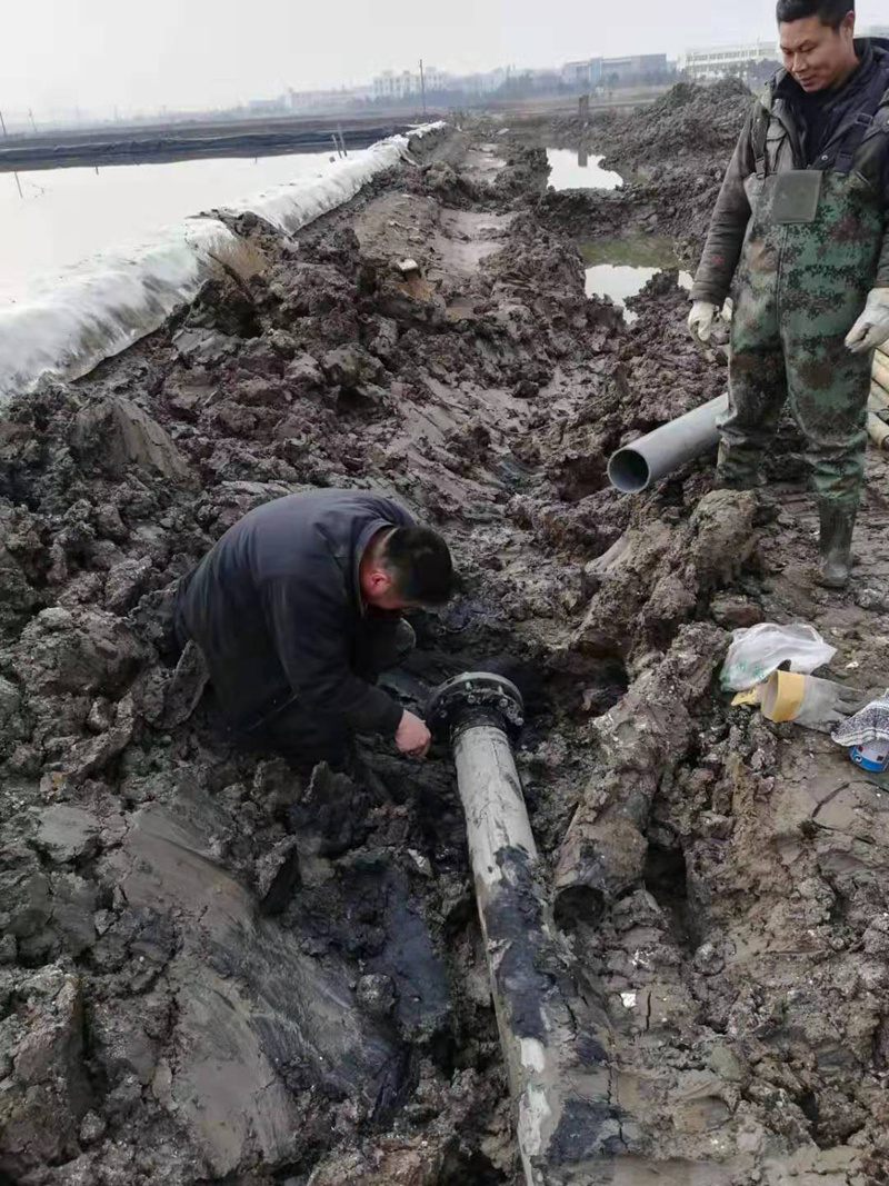 該項工程是為了配合開發(fā)區(qū)新建道路正常施工,和保證大浦工區(qū)原鹽生產(chǎn)不受影響,由翔立分公司承接的猴嘴十二路下穿DN315和DN160兩根PE管道穿越工程。因規(guī)劃的穿越點處于水塘邊,現(xiàn)場施工環(huán)境較為困難。翔立公司參與施工人員想方設(shè)法克服困難,穿越施工前采取發(fā)電機(jī)水泵抽排水、填土夯實頂管機(jī)作業(yè)場地、克服淤泥深等障礙,保證施工進(jìn)度的正常進(jìn)行。