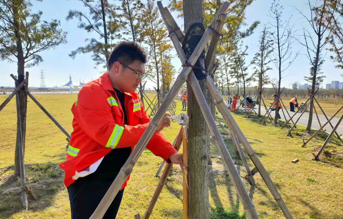 綠化衛(wèi)士為樹木披上“防寒衣”