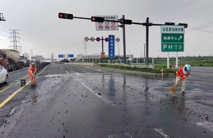 7月27日上午,臨近下班之時,該分公司228省道班長姚功,接到公司應(yīng)急處理電話,疏港大道向西路面近1500多米長,車輛拋灑嚴(yán)重影響往來車輛安全經(jīng)過。正在下班的途中他二話沒說,調(diào)轉(zhuǎn)車頭奔赴事發(fā)地點疏港大道,迅速擺開安全錐,揮動手中鐵銑開始突擊清理路面上礦土,石塊。聞訊得知此事,共產(chǎn)黨員紀(jì)樹好,胡可貴,班組成員孫洪召等同志二話沒說,一并趕往現(xiàn)場支援,橙色工作服在陽光照耀下顯得格外靚麗。工作現(xiàn)場,遇到大的石塊他們就用手搬,小的、碎的就用鐵锨和掃把清理,中午的陽光火辣辣的,他們就這樣頂著烈日奮戰(zhàn)近兩個多小時,共轉(zhuǎn)運礦土泥塊、石子近10余車,高質(zhì)高效保障了核心道路車輛安全通行。(楊波)